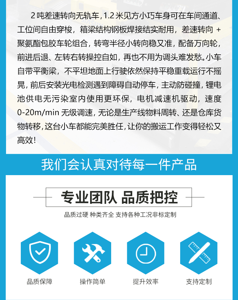 河南智杰優(yōu)搬運(yùn)設(shè)備有限公司以“質(zhì)量取勝,服務(wù)取勝”的經(jīng)營(yíng)理念,為了客戶的利益,公司建立了一整套快速的質(zhì)量信